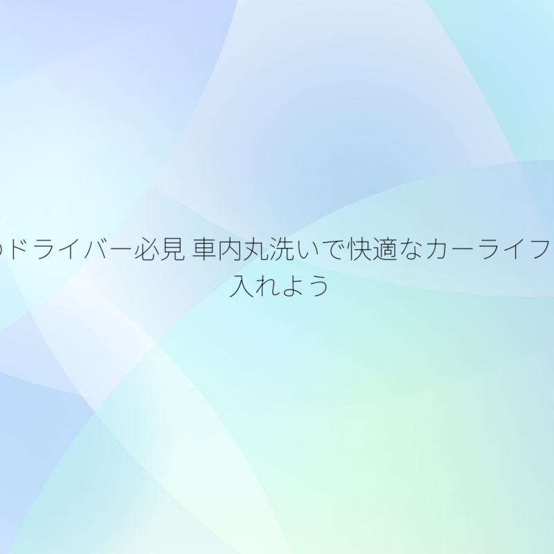 30代のドライバー必見 車内丸洗いで快適なカーライフを手に入れよう